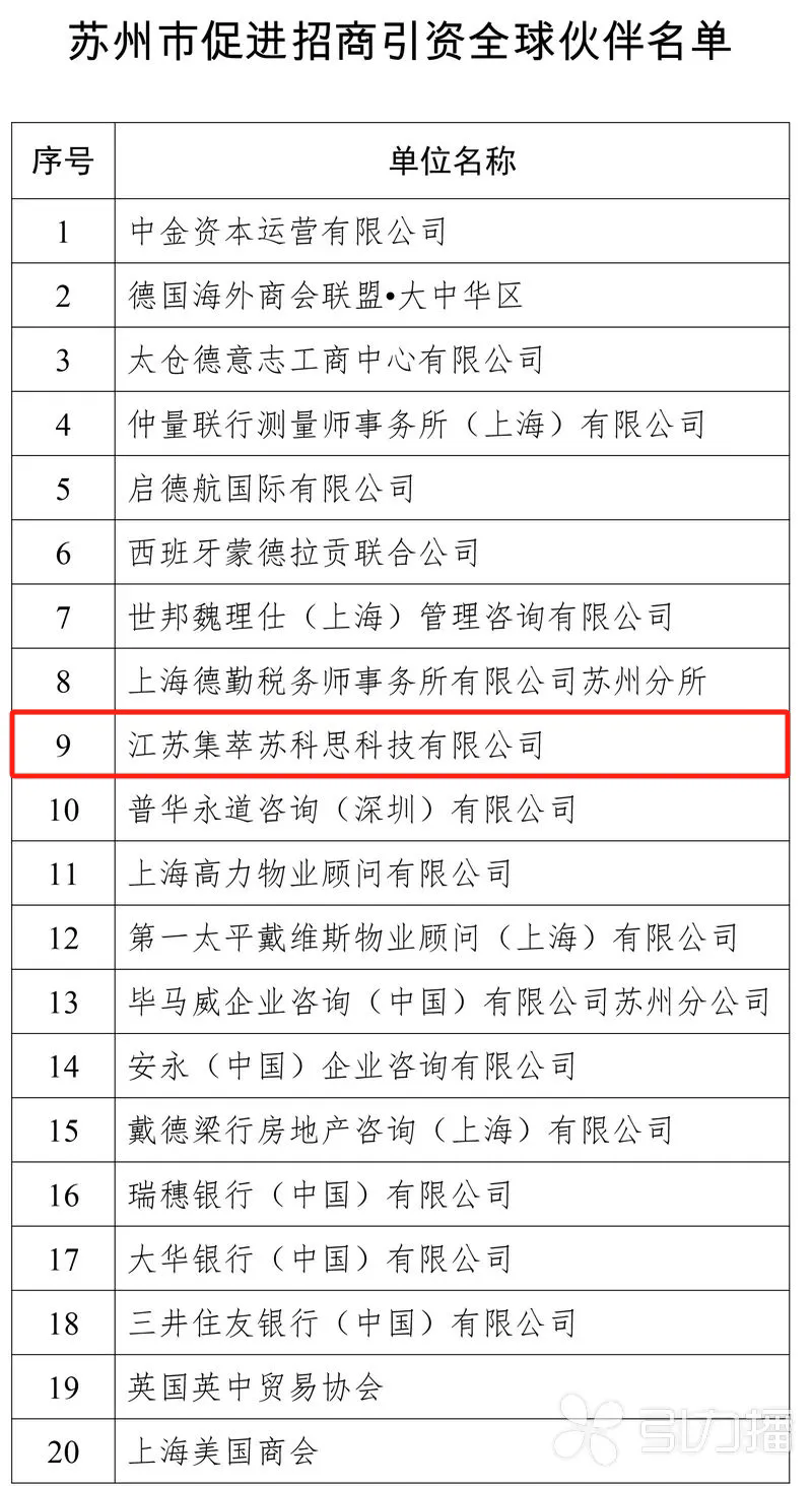 获颁苏州市促进招商引资全球伙伴荣誉奖牌。